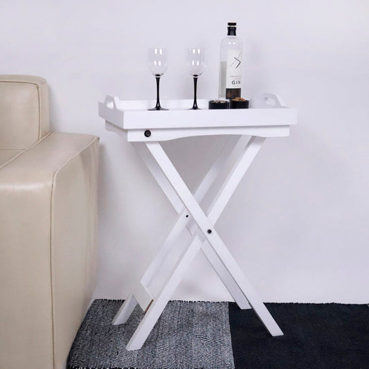 Butler tray with stand- Furniture, 23" X 14.5"x27.5, Mango wood, White
