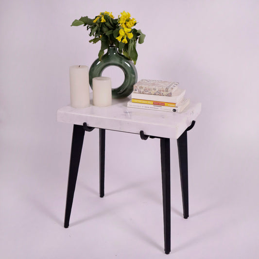 White Marble Top knockdown table, Marble & Metal, 20.5"x14"x23"