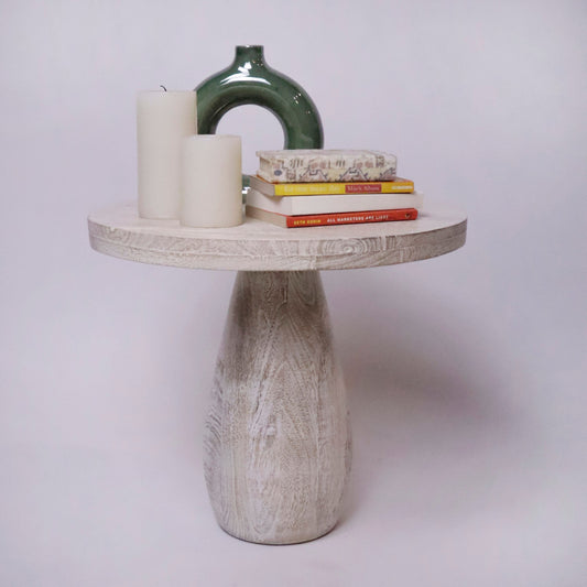 White sand blast Mushroom table , Mango wood, 19" round & 17" Height