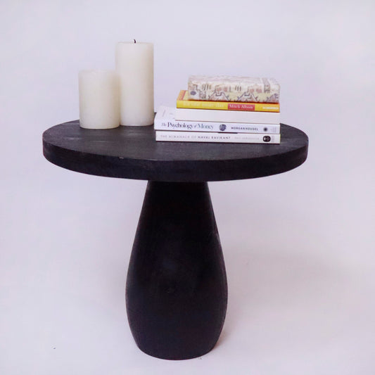 Black sand blast Mushroom table, Mango wood, 19" round & 17" Height