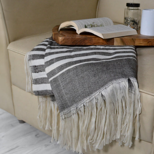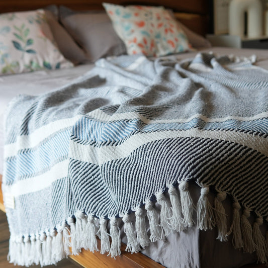 Sustainable PET Yarn Throw Blanket-Woven stripes