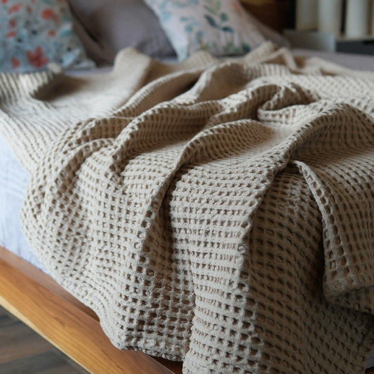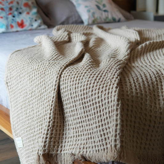 Waffle Weave Throw, 50"x 70", 100% Fresh Cotton, Sand