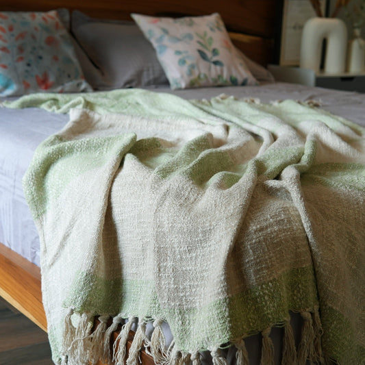 Recycled Polyester Yarn Throw Blanket - Sage Green