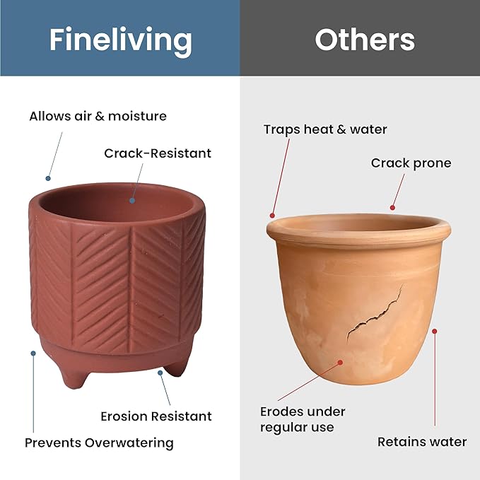 - WEATHERPROOF & EROSION RESISTANT - Our boho plant pots are treated with water based environment friendly sealers which keep the pots weatherproof without closing the natural breathability of the clay pot, making it a great choice for succulents. Made from high-quality and high-fired terracotta, these succulent pots and planters for indoor plants resist erosion and are long lasting.