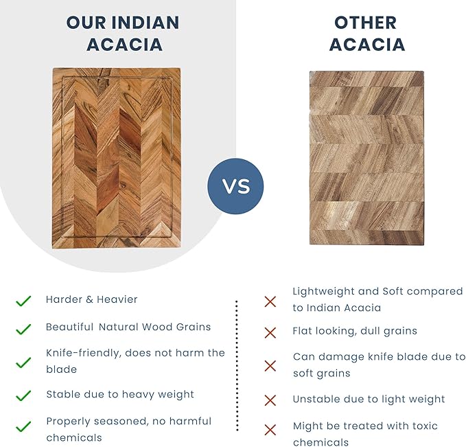 Our wood cutting boards for kitchen counters are meticulously crafted from non-toxic, food-grade wood. Furthermore, the smooth matte finish ensures optimal food safety. Cleaning and maintaining this acacia wood cutting board is a breeze. Wash it with mild soap and water, and it will be ready for your next culinary adventure. Avoid hot food.