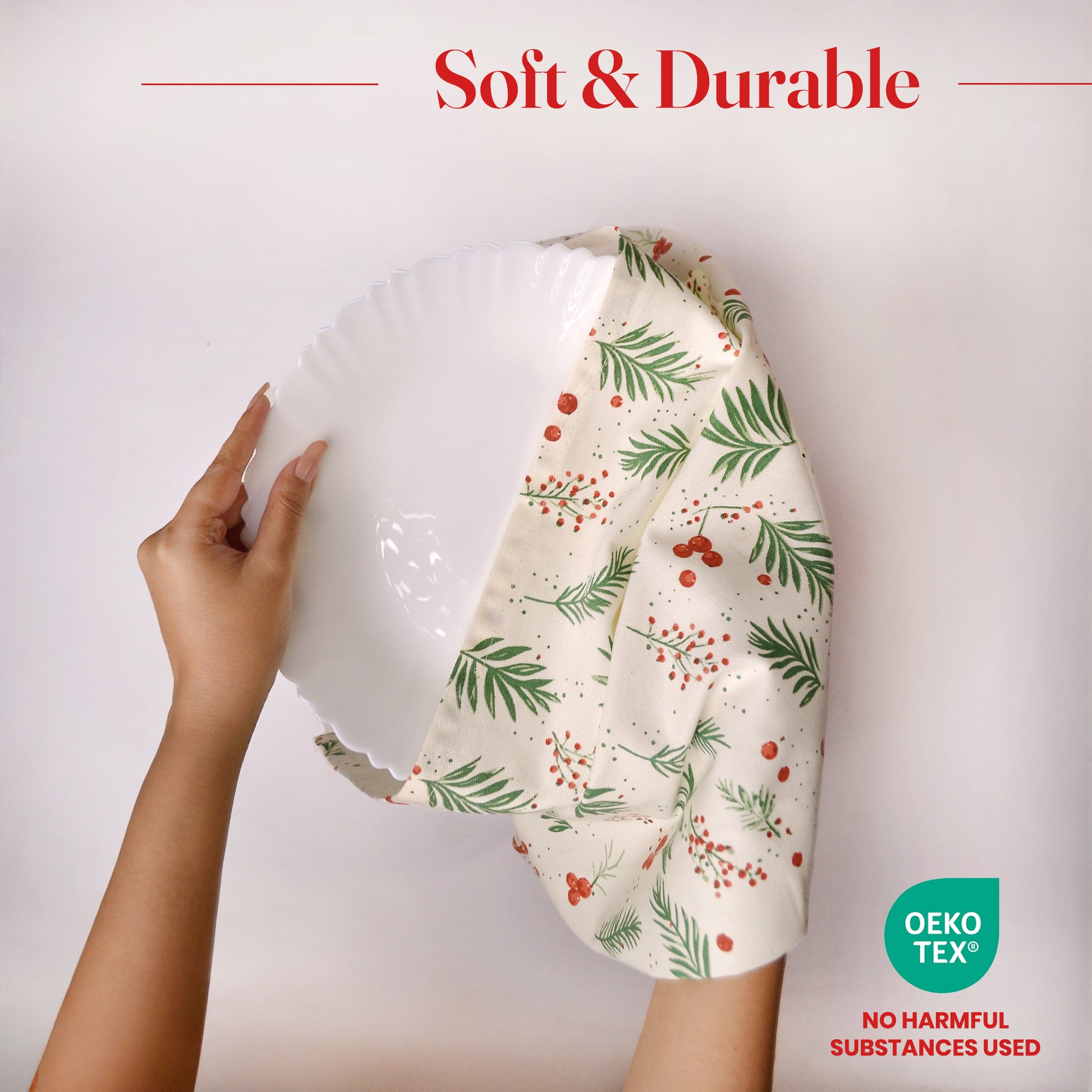 CRAFTED WITH QUALITY: These cotton kitchen towels are crafted from recycled cotton that helps give high absorbency, making them perfect for drying dishes and glassware. The texture of towels helps enhance their ability to soak up moisture effectively, leaving your kitchen surfaces clean and dry.
