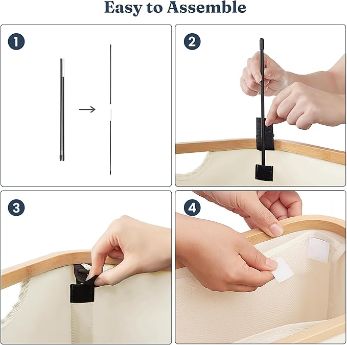 - EASY ASSEMBLE & MULTIPURPOSE USE: In this collapsible laundry hamper basket, insert 4 support rods for a freestanding structure in minutes. This skinny laundry hamper with bag is perfect for clothes, towels, toys, bathroom storage bins or college laundry hamper.
