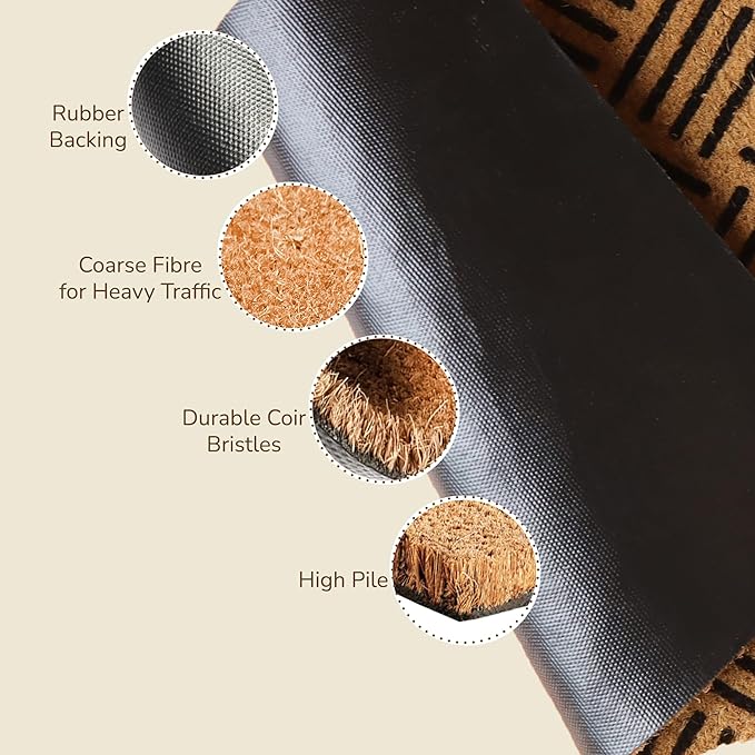 - SCRAPES-OFF DIRT TO KEEP YOUR HOME CLEAN: Our coir door mat outside entrance are designed to scrape off dirt and debris from shoes, keeping your floors clean. These indoor outdoor rugs effectively trap dirt, making them ideal for entryways and high-traffic areas. With our coir doormats for outdoor entrance, you can maintain a cleaner home by preventing dirt from being tracked inside.