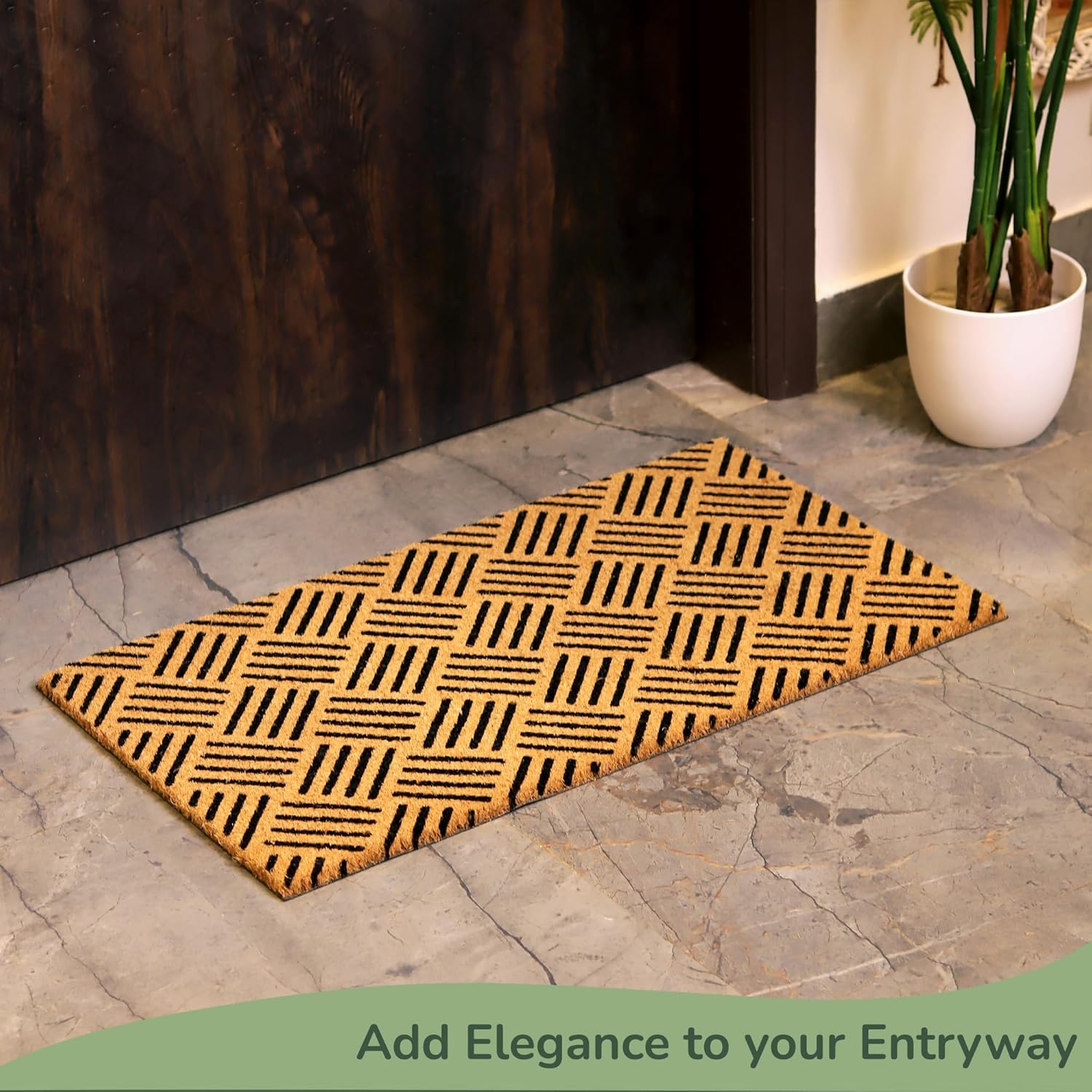 - BEAUTIFULLY CRAFTED NATURAL COIR MATS: Transform your doorstep with our beautifully crafted natural coir doormat. With size 30 inches x 17 inches, these outdoor rugs are designed to enhance the entrance to your home and add a touch of elegance to your patio decor. The thick welcome mat outdoor is made of high-quality coir material, ensuring durability and longevity, making it the perfect front door mat.